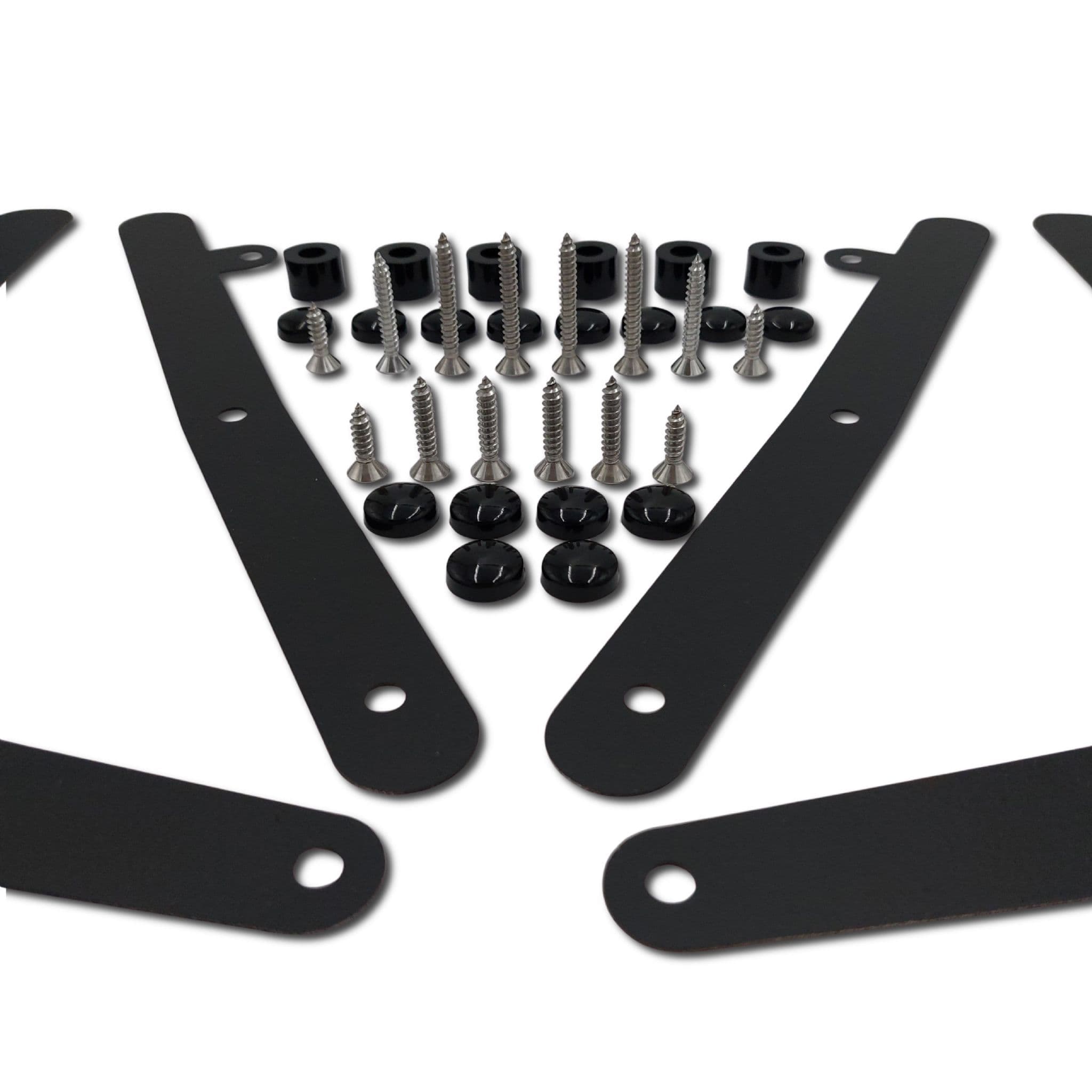 2 × Stainless steel front brackets (black powder-coated)